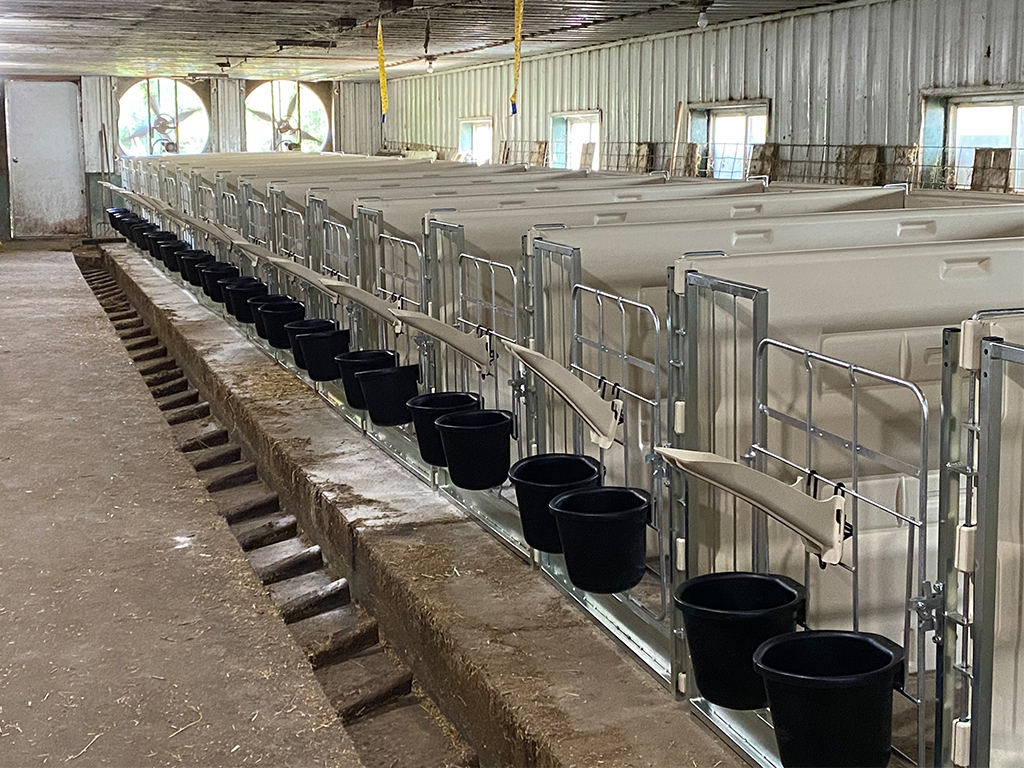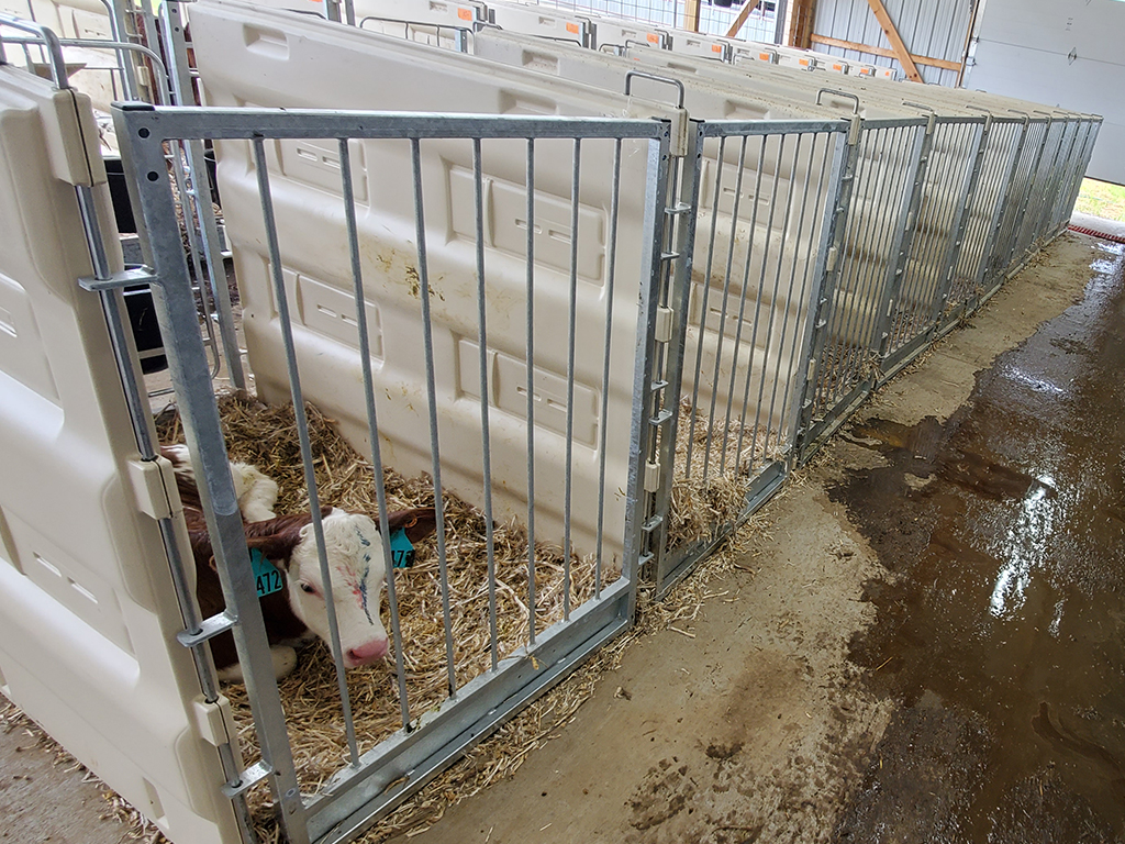 Bei der Kälberhaltung im Pen-System können die Zwischenwände nach einer bestimmten Zeit entfernt werden. Dadurch haben die Kälber die Möglichkeit, gemeinsam in einer größeren Box zu laufen. Das fördert die soziale Interaktion und kann den Tieren helfen, sich besser zu entwickeln.