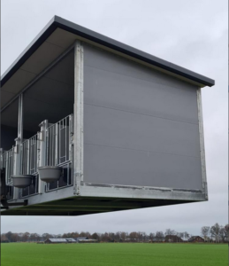 Die anhebbare Kälbereinheit ist ein neues System, bei dem Kälber sowohl einzeln als auch in kleinen Gruppen im Freien untergebracht werden können.